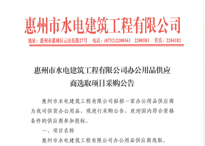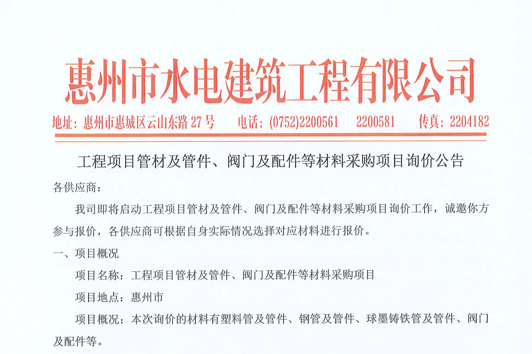 惠州市水電建筑工程有限公司成立于一九六四年四月,隸屬惠州市水務(wù)集團(tuán)有限公司,是一家國有綜合性施工企業(yè),主營水利水電工程、房屋建筑、市政工程等施工業(yè)務(wù)。公司擁有水利水電工程施工總承包一級(jí)、建筑工程施工總承包一級(jí)、市政公用工程施工總承包一級(jí)、公路工程施工總承包三級(jí),公路路基、路面及建筑裝修裝飾專業(yè)承包二級(jí),環(huán)保工程、機(jī)電安裝、河湖整治、輸變電工程專業(yè)承包三級(jí)等經(jīng)營資質(zhì)……